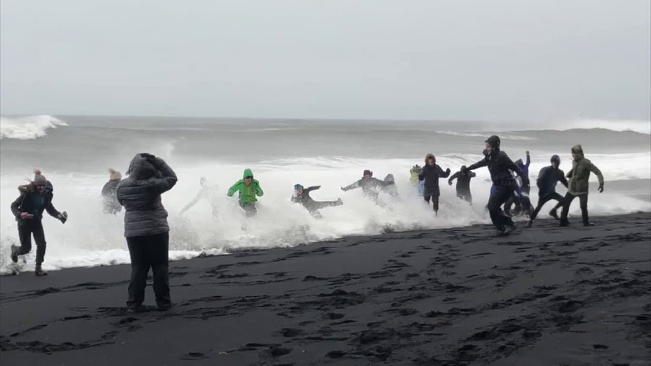 It is important to keep well back from the sea at Reynisfjara. Sneaker waves rush up the beach in an instant and pull people out to sea, too far out for a safe rescue by the coast guard. Pay attention to all the warning signs at Reynisfjara, note where the waterline is in the sand and keep as far back from it as possible.