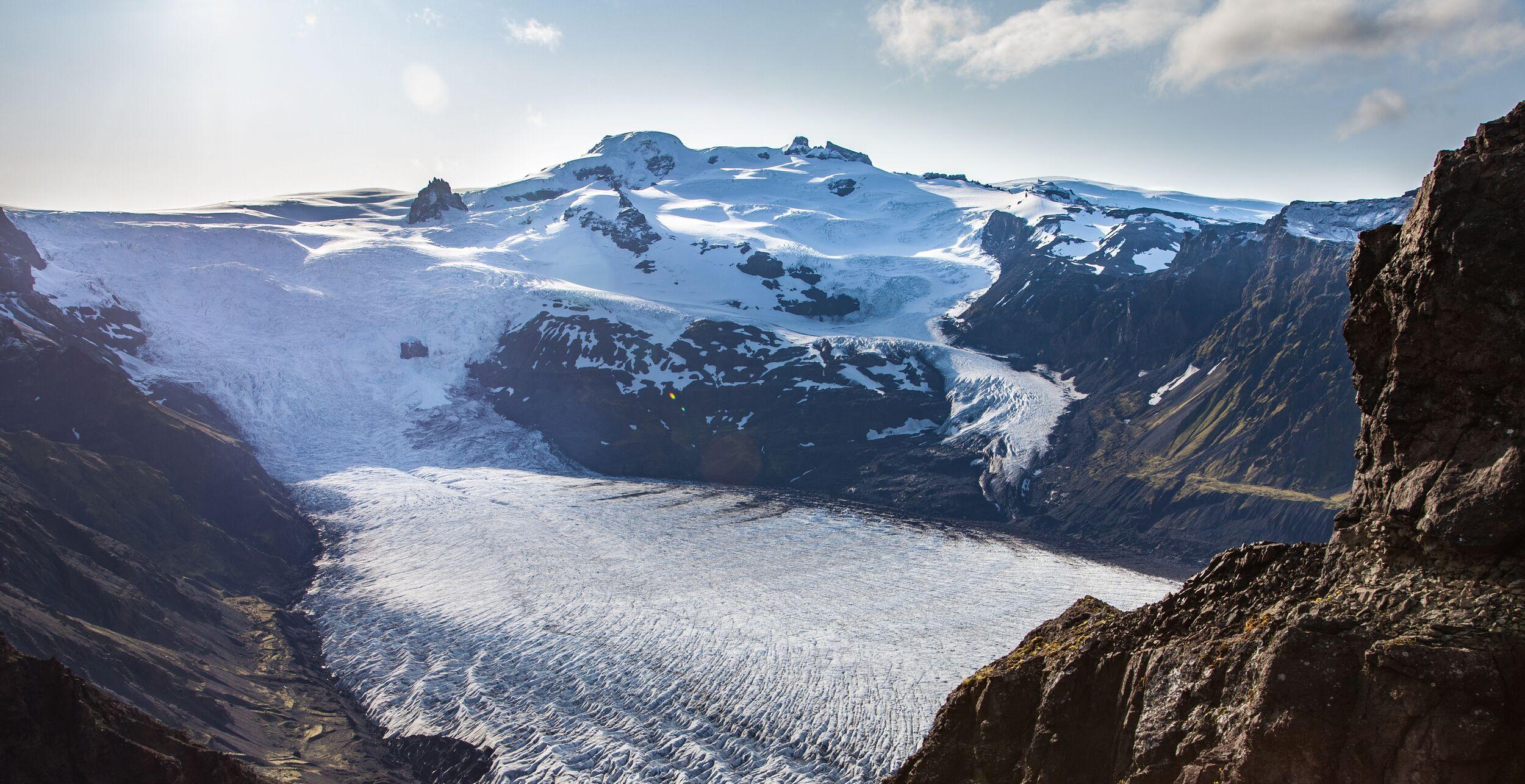 Enjoy a versatile, scenic hike by the volcano Katla that rewards you with a stunning panoramic glacier view of Eyjafjallajökull, Sólheimajökull and other unique landscapes of the scenic south coast. This guided day tour, which is moderately difficult, gives you a glimpse into the world of Iceland’s geological wonders and how glaciers have shaped the land for thousands of years. A specially modified glacier truck transports you approximately 750 metres to start the hike, which will generally continue downhill. Participants should be in good physical shape with some mountain climbing experience.